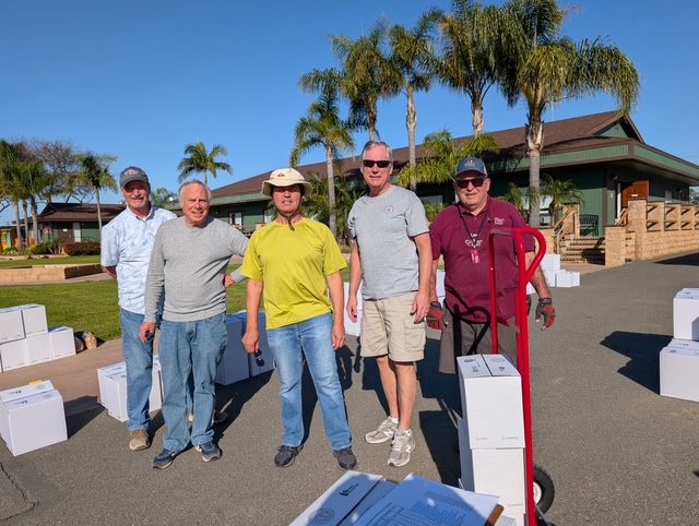 Two pallets of goods were delivered to the new OCWS office location at the OC Fair and Event Center on Friday, January 30. All bottles and corks were distributed the next day by Stacey and Ed with additional help coming from Wendy Taylor, John Lane, Raul Serna and John Kienstra.